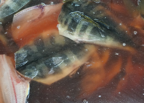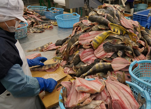 脂の乗り具合とサイズ、傷などの状態を見ながら再度選別します